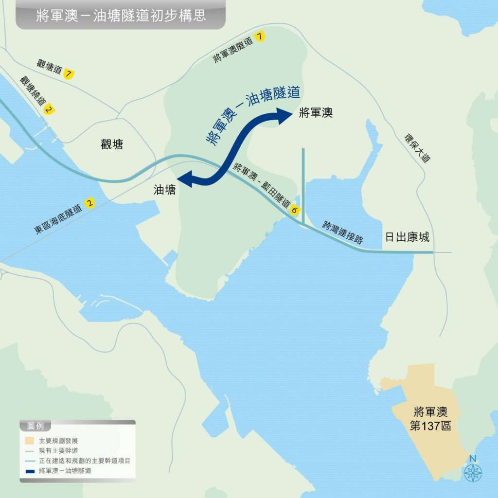由於政府將會發展將軍澳第137區,該區的人口將持續增加,為解決當地居民出入市區的需求,政府將會在將軍澳和油塘間興建一條長約2公里的隧道,屆時隧道將會成為繼將軍澳隧道和將軍澳-藍田隧道後第三條來往將軍澳及東九龍的隧道。