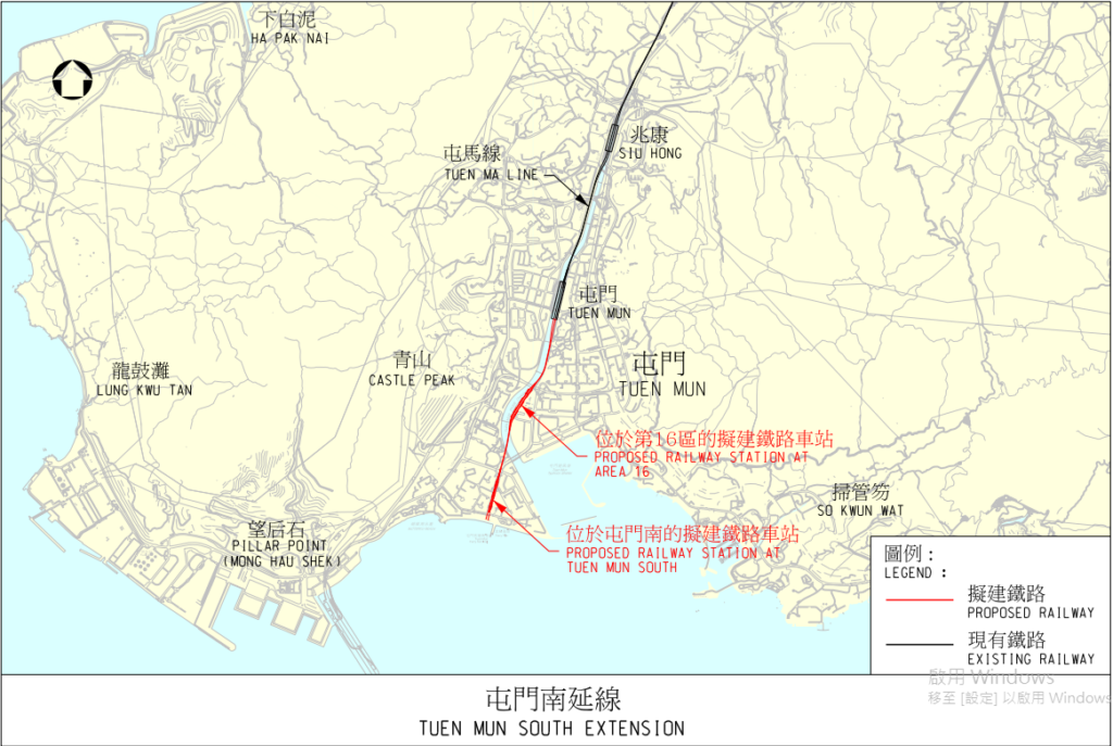 圖十:屯門南延綫工程的計劃圖