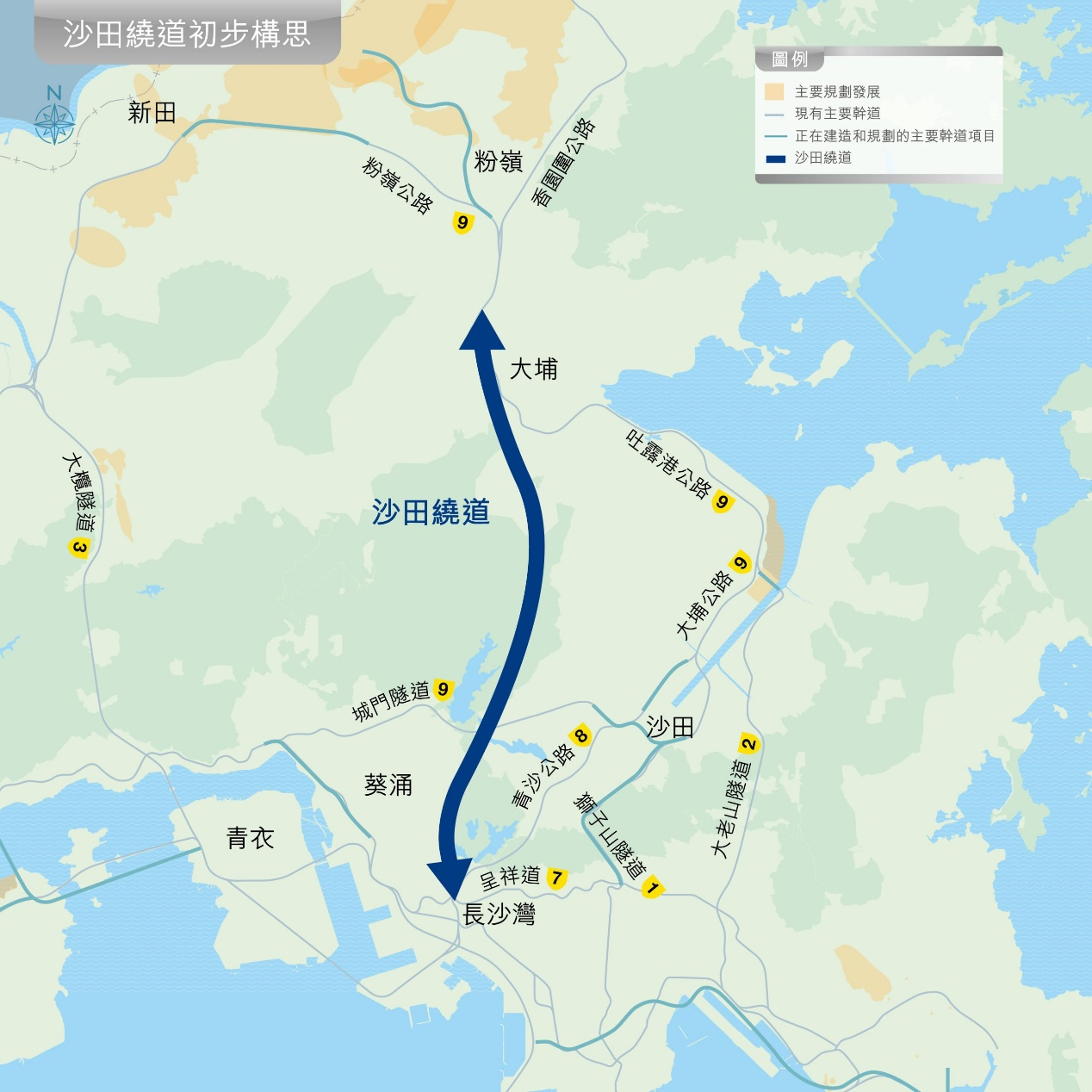 在原有的北都公路規劃上,政府計劃將幹道由粉嶺北東延,接駁沙頭角公路的交匯處,從而打通新界北的交通往來。