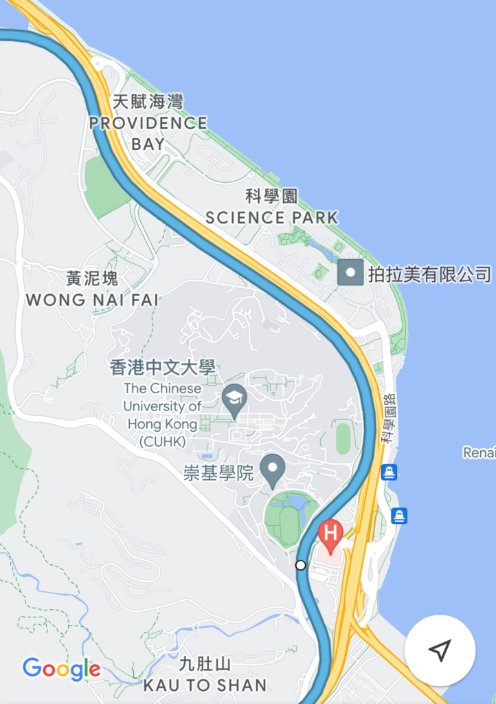 圖十五:白石角及東鐵綫(藍色的綫路)位置圖