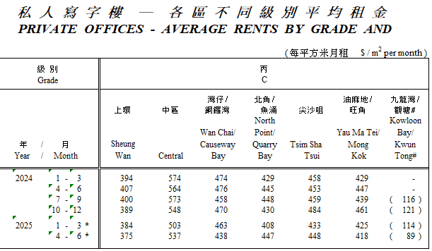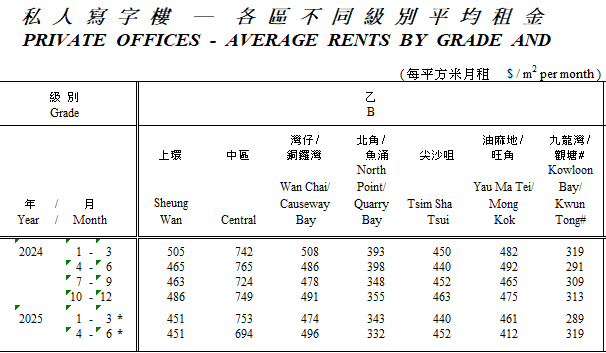 香港丙級商廈市場供應有限,空置率低於高級商廈,租金跌幅較輕,成為成本敏感企業的主要選擇,尤其在九龍及新界區較為集中。未來供應不多,有助市場維持一定穩定,但整體租金及價格仍受宏觀經濟及市場環境影響而承壓。